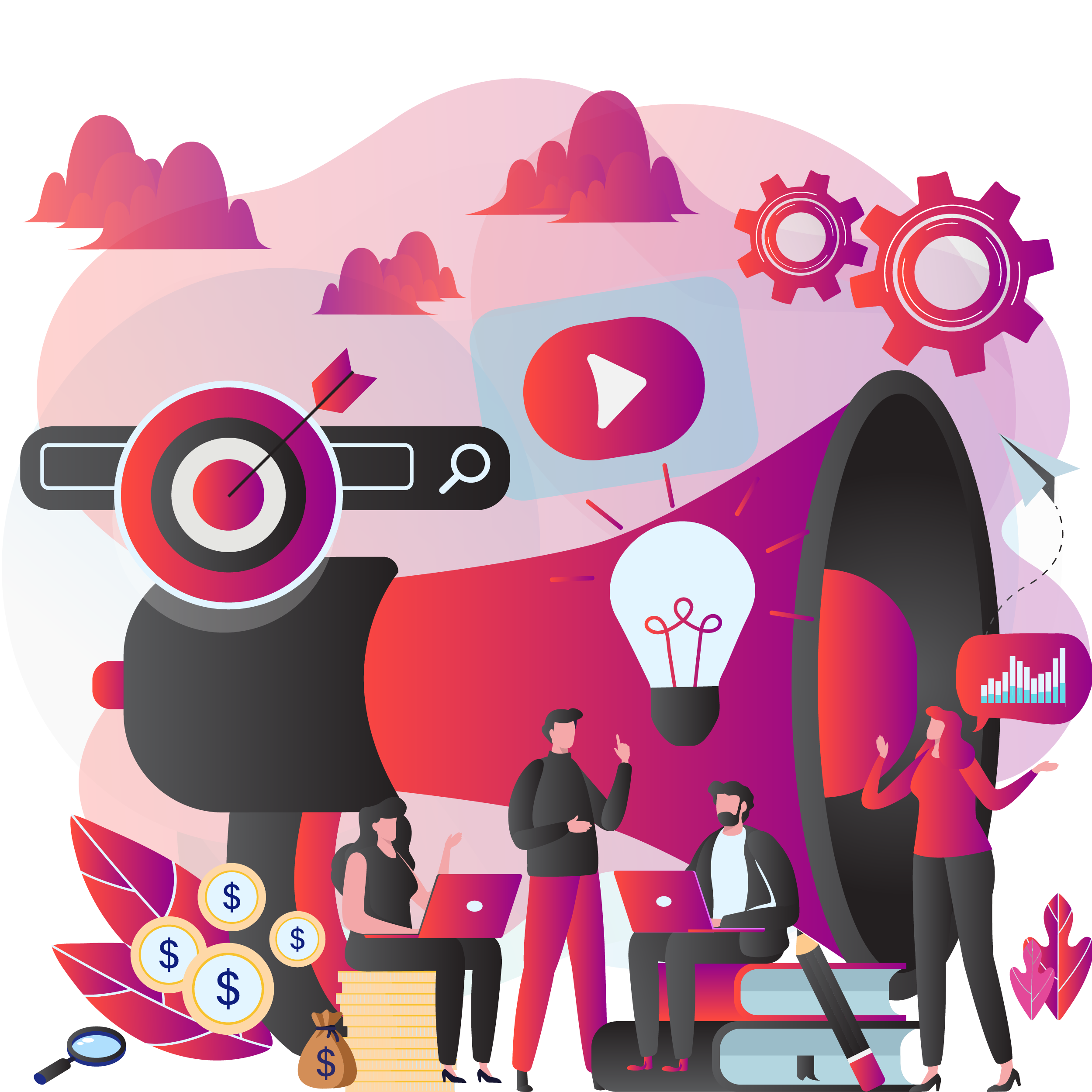 This is where all the magic happens! Every website design is specifically tailored to the client's sole vision and requirements. Our website design and web development team and expert partners put their minds together to build the best product for you. From graphic design to video, we will expertly present your brand's message and values